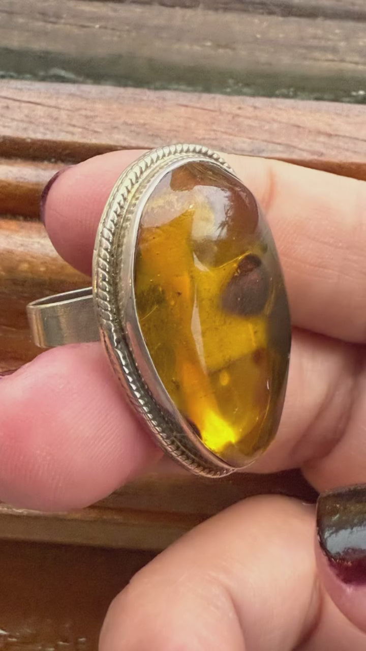 Anillo ajustable de Plata 925 con ámbar de primera.