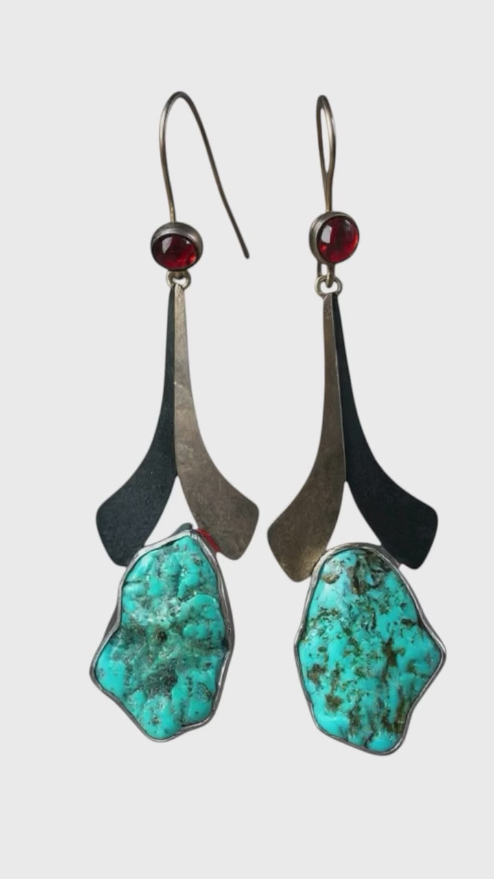 Arete de Plata 950 con turquesa natural y ámbar de primera Joyería artesanal. Pieza hermosa!