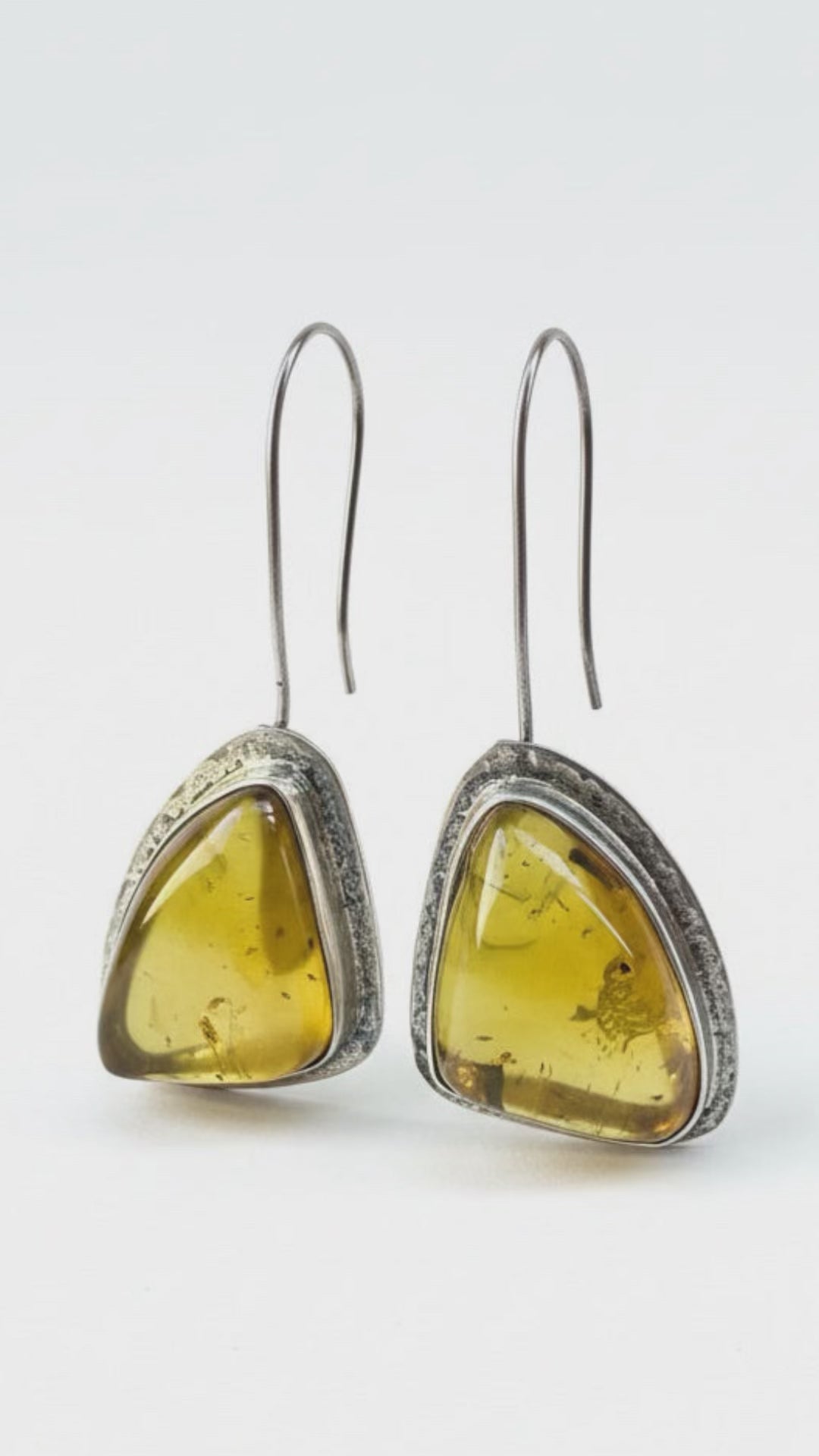 Arete de  Plata 925 con ámbar de primera. Joyería artesanal. Pieza hermosa!