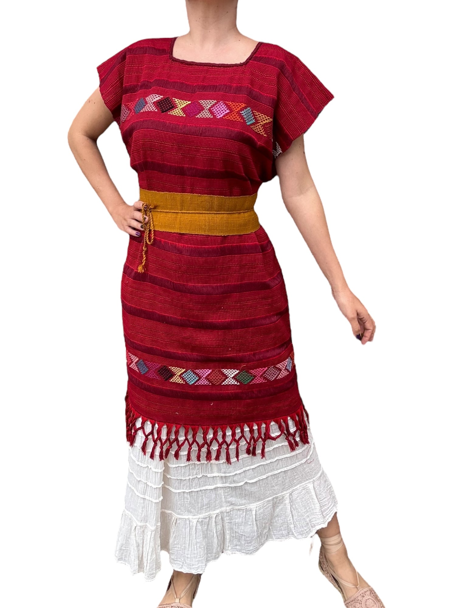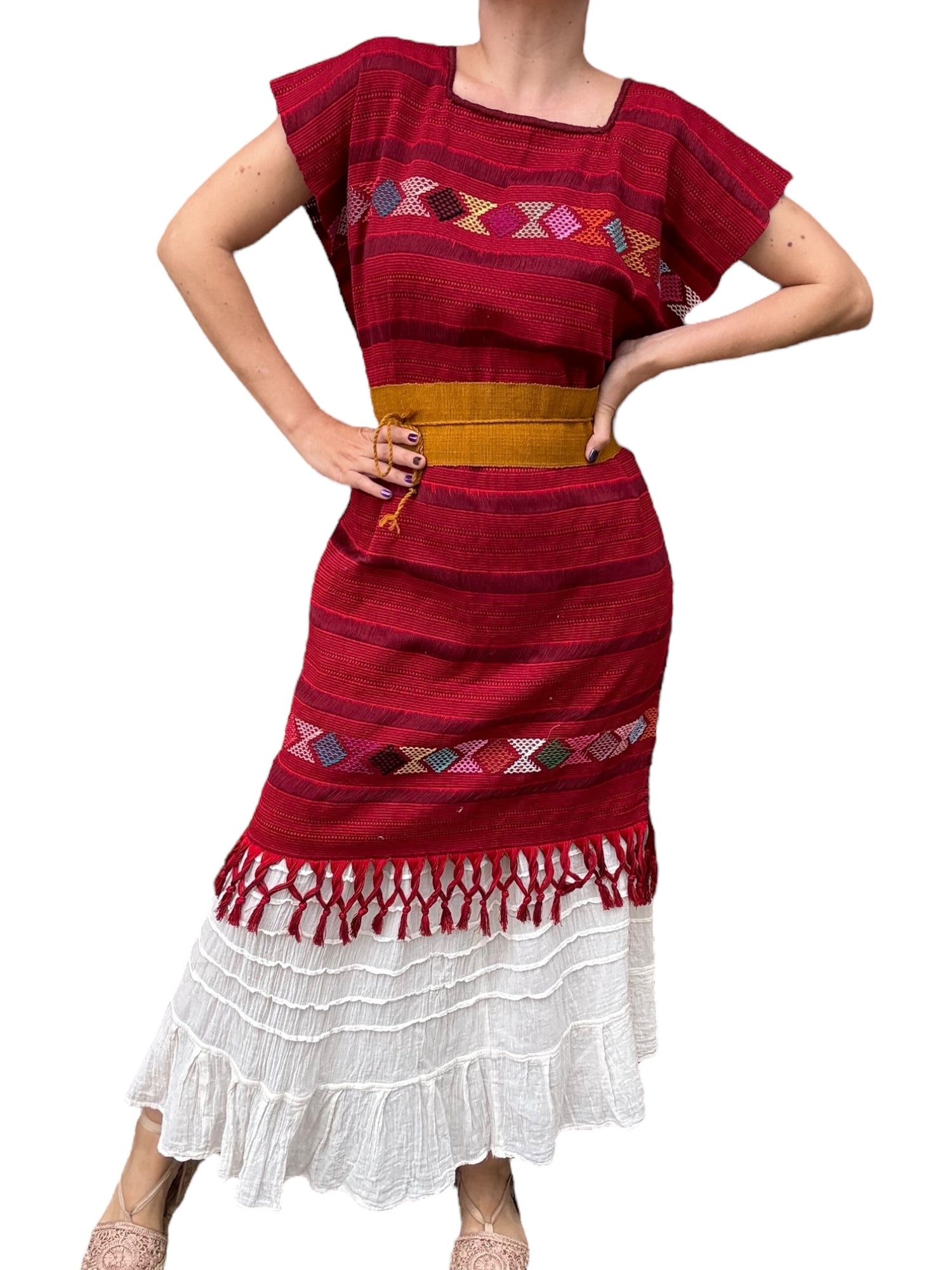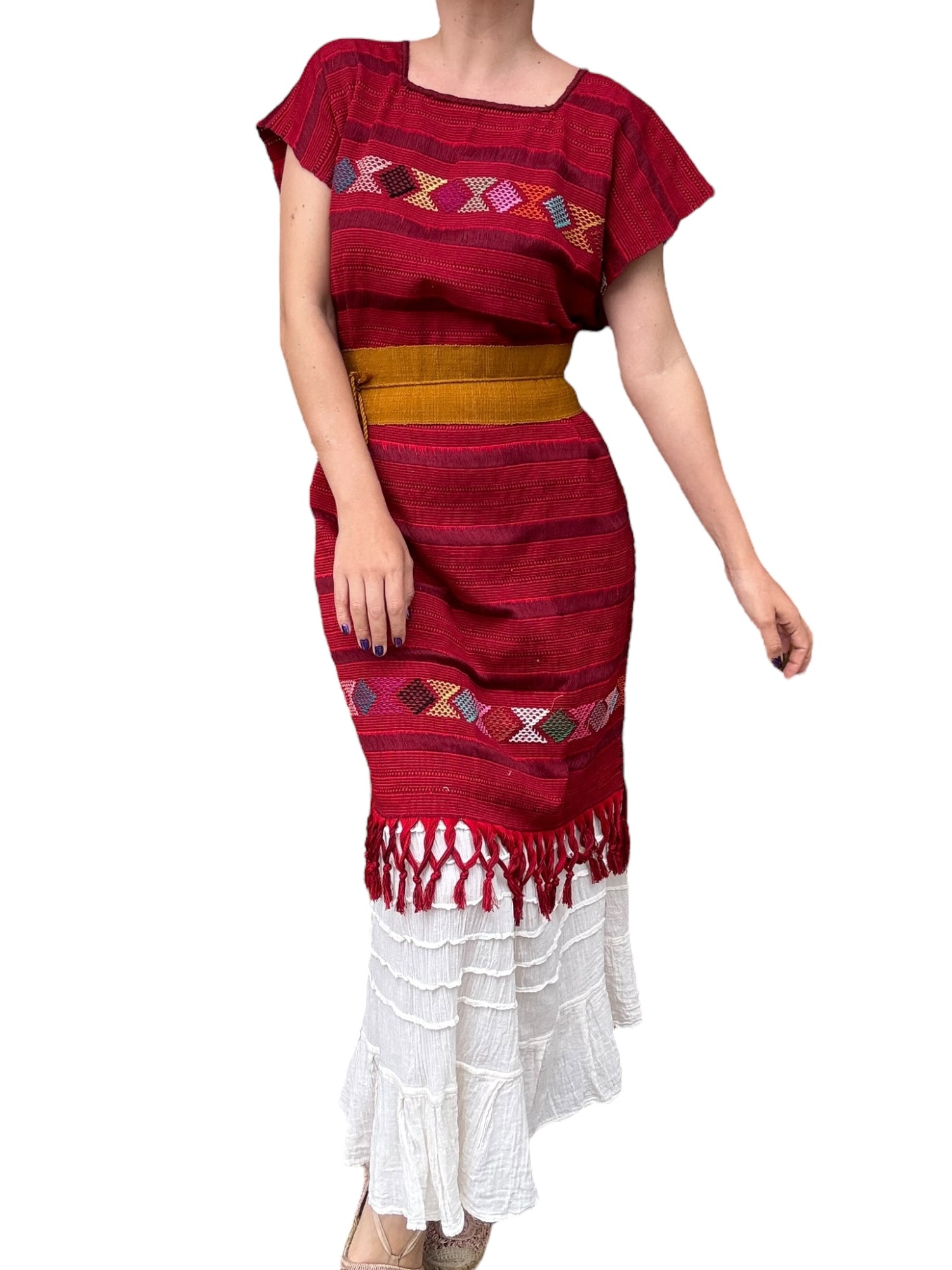 Conjunto Fuego Huipil hecho en Telar de cintura con hilo de algodón