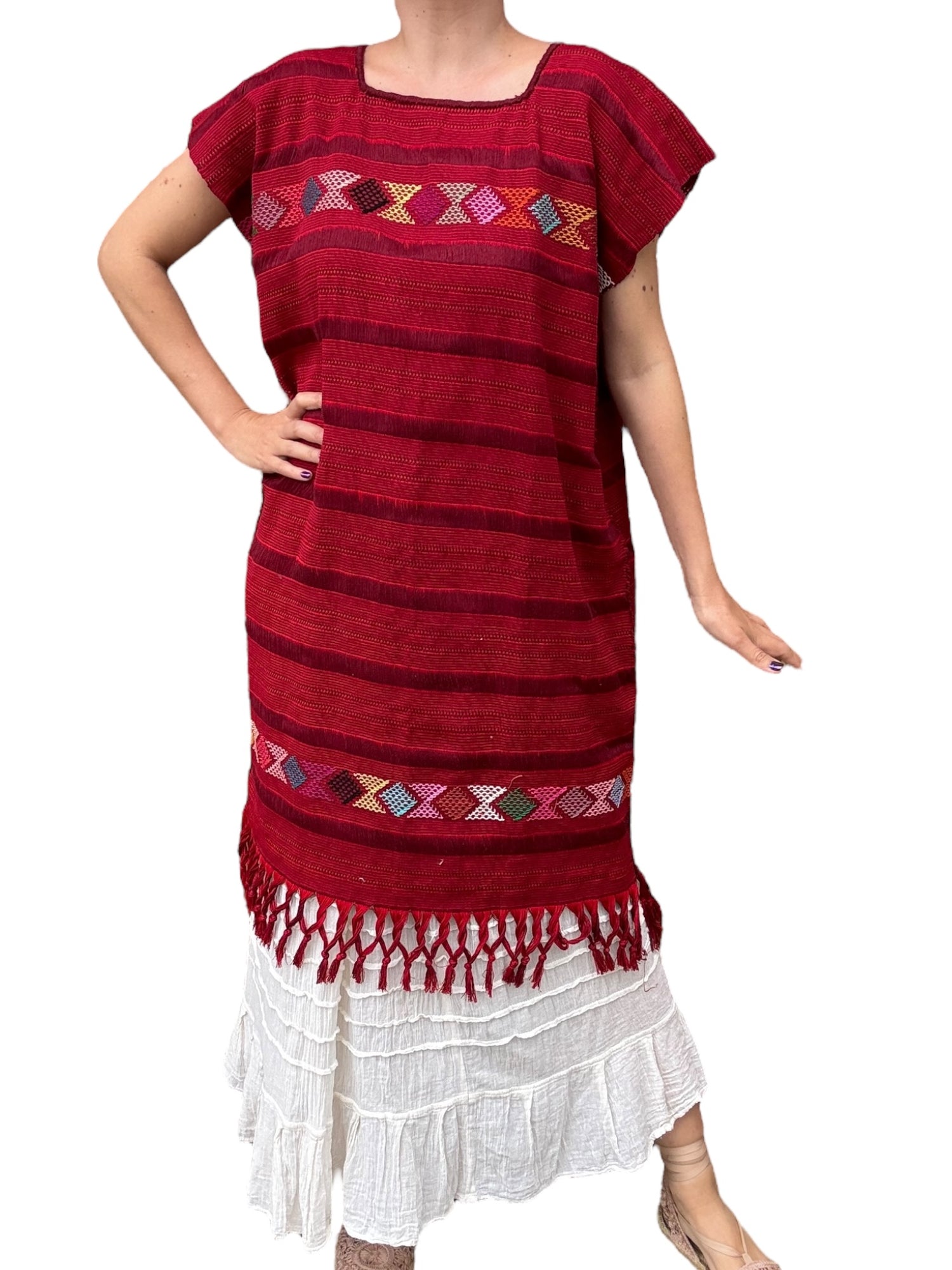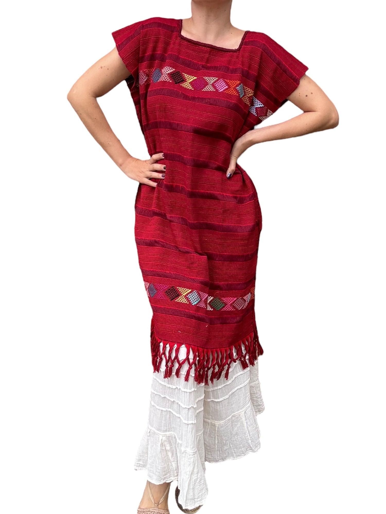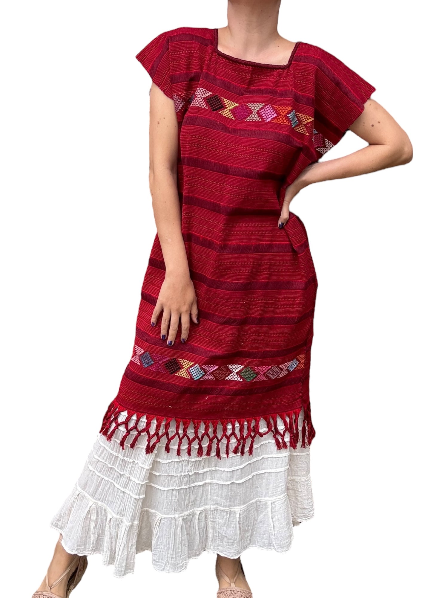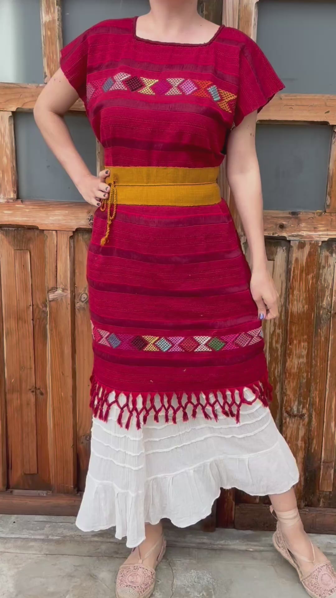 Conjunto Fuego Huipil hecho en Telar de cintura con hilo de algodón