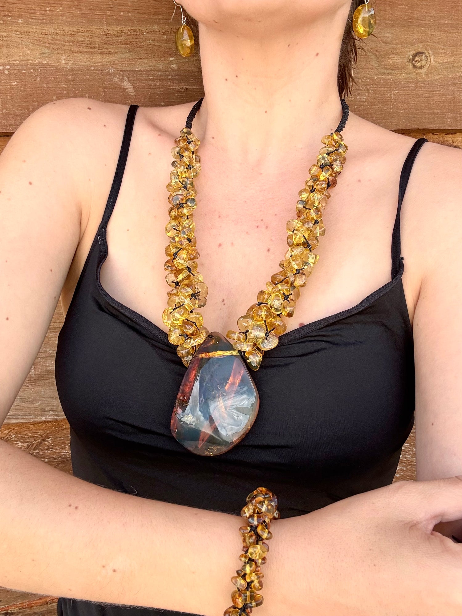 Hermoso conjunto de Collar de Ámbar auténtico de Simojovel Chiapas armado artesanal de macramé. Pieza artesanal hecha con mucho cariño.