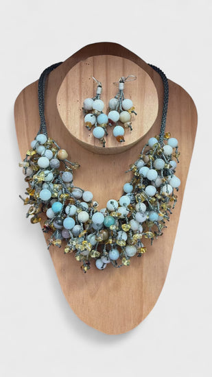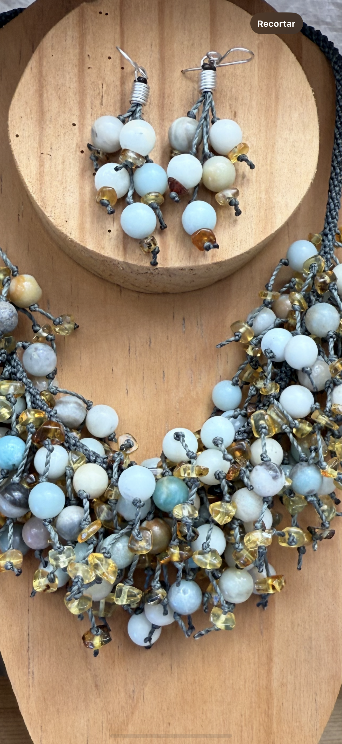 Hermoso conjunto de Collar de Ámbar auténtico de Simojovel Chiapas y Amazonita armado artesanal de macramé. Pieza artesanal hecha con mucho cariño.