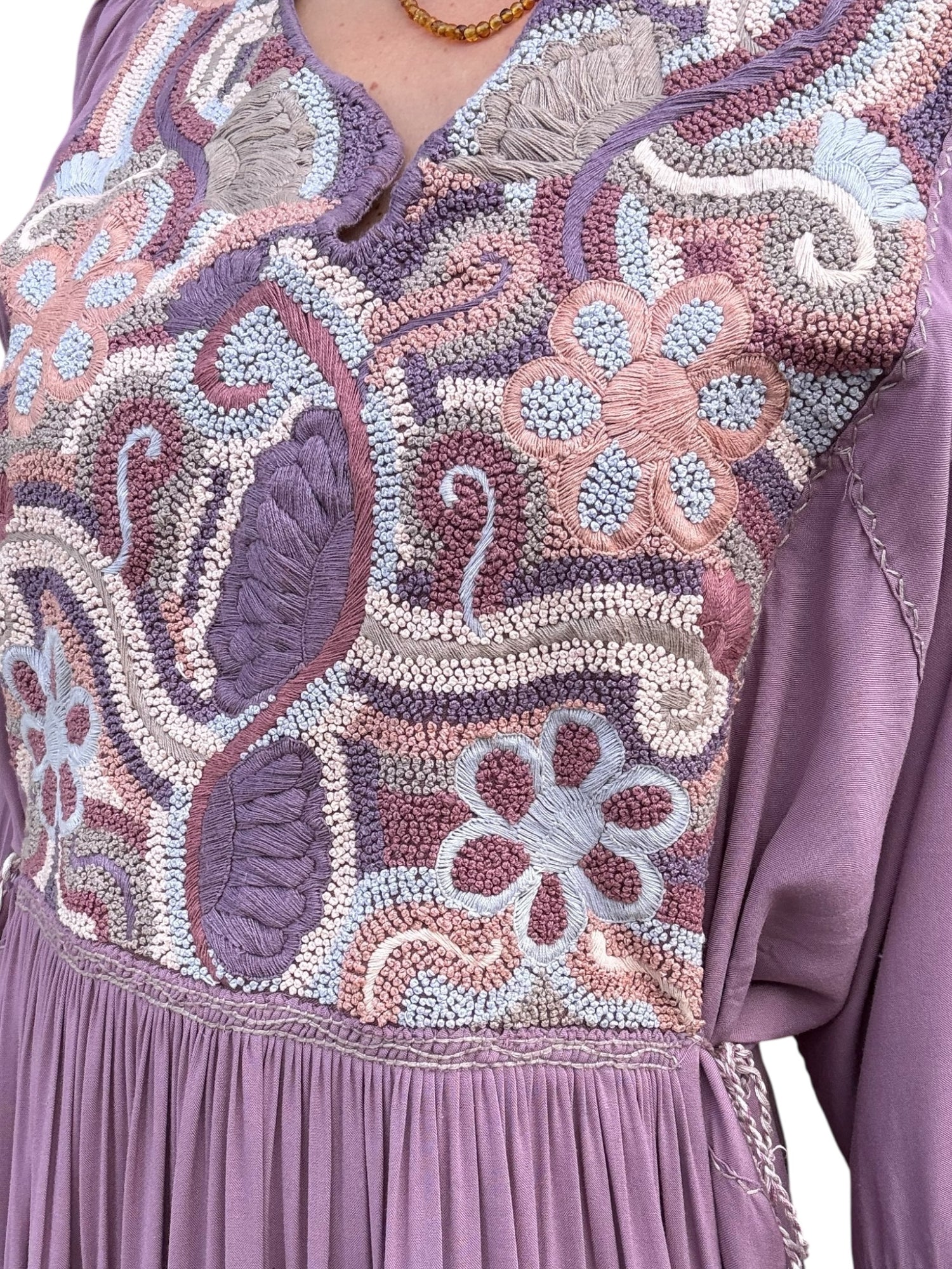 Bordado multicolor hecho a mano.